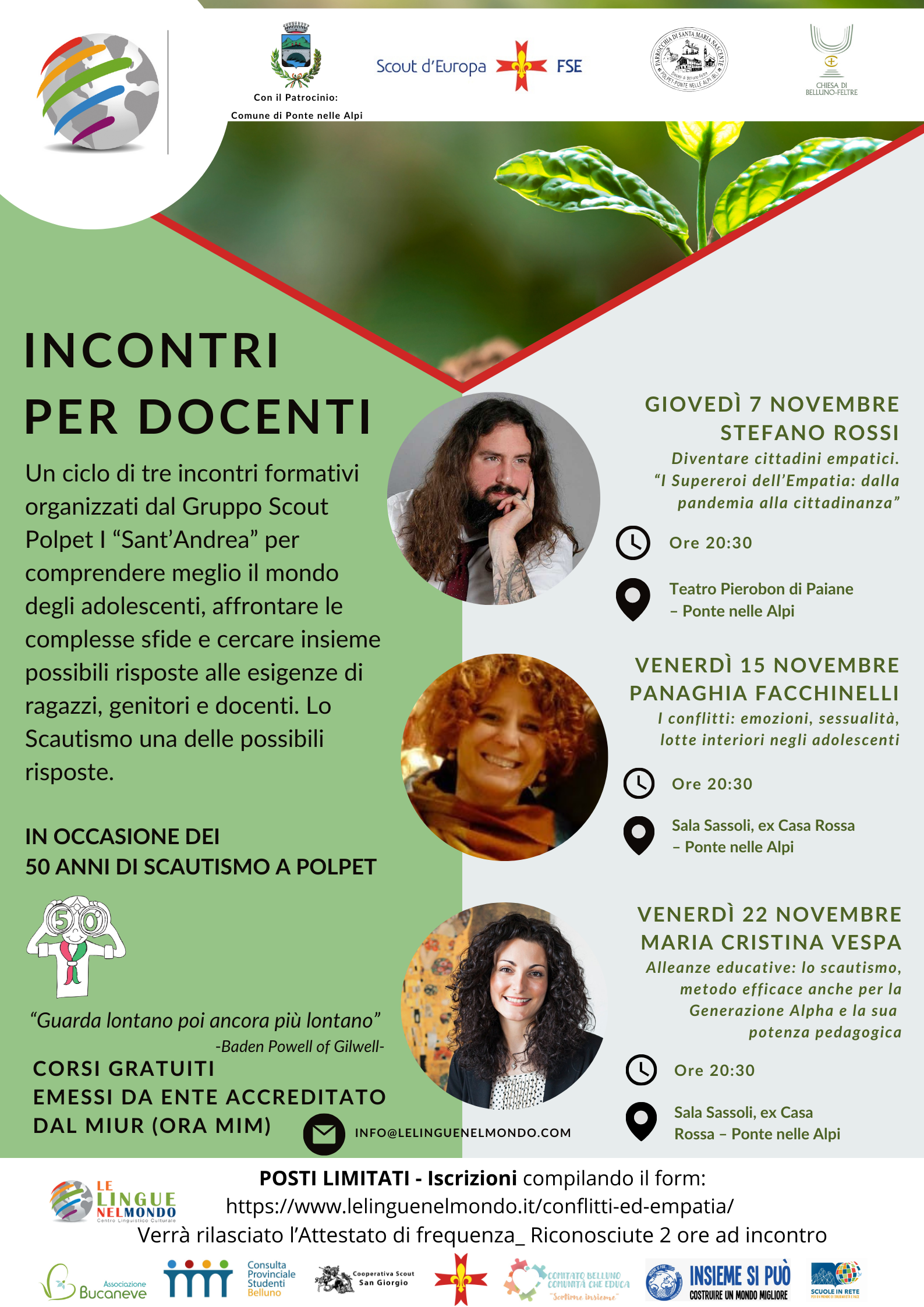 OBIETTIVI: Un ciclo di tre incontri formativi in collaborazione con il Gruppo Scout Polpet I “Sant’Andrea” per comprendere meglio il mondo degli adolescenti, affrontare le complesse sfide e cercare insieme possibili risposte alle esigenze di ragazzi e genitori.