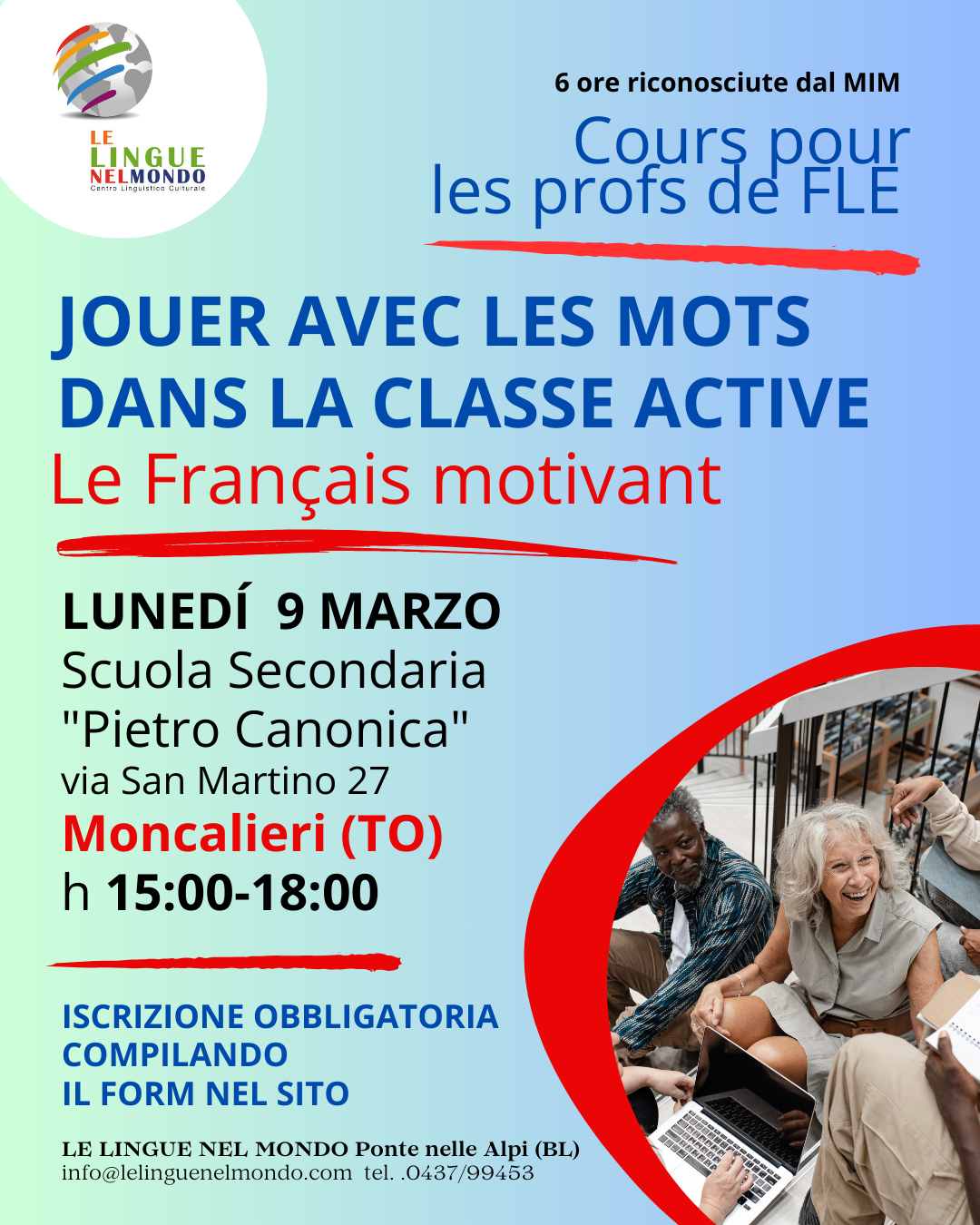 - Rilascio di Certificato di Formazione LINGUE NEL MONDO, per i docenti – riconosciuto dal MIM (Ministero dell’Istruzione e del Merito) emesso da ente accreditato, presente nell’Elenco dei soggetti accreditati/qualificati per la formazione del Personale della Scuola.