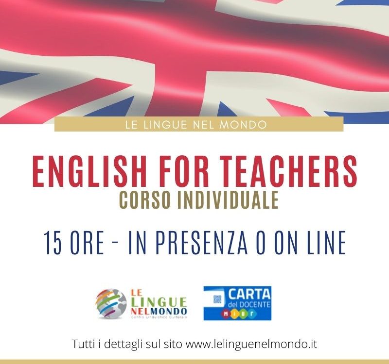 Per i docenti che NON possono usufruire del “Bonus docente“ Carta del Docente, l’intera somma dovuta dovrà essere saldata con Bonifico Bancario intestato a Le Lingue nel Mondo o saldata in contanti o pos presso la sede associativa.