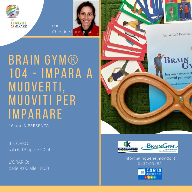 Formatrice: Christine Lundquist, Consulente/Formatore di Kinesiologia Educativa e Brain Gym® Codice SOFIA: 132797
