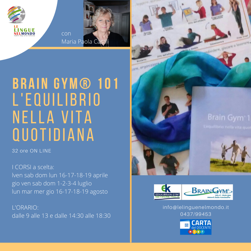 Formatrice: Maria Paola Casali, Consulente/Formatore di Kinesiologia Educativa e Brain Gym®Codice SOFIA: 77154
