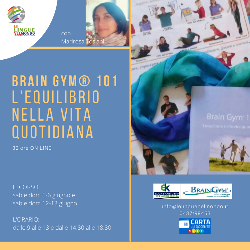 Formatrice: Marirosa Tosiani, Consulente/Formatore di Kinesiologia Educativa e Brain Gym® Codice SOFIA: 77159