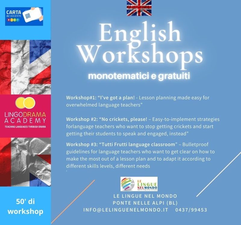 Si fa presente che i Workshops potrebbero essere propedeutici al corso completo di LingoDrama.