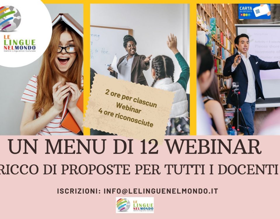 12 webinar a scelta_Per tutti gli ordini di scuola 2 ore di webinar_4 ore riconosciute