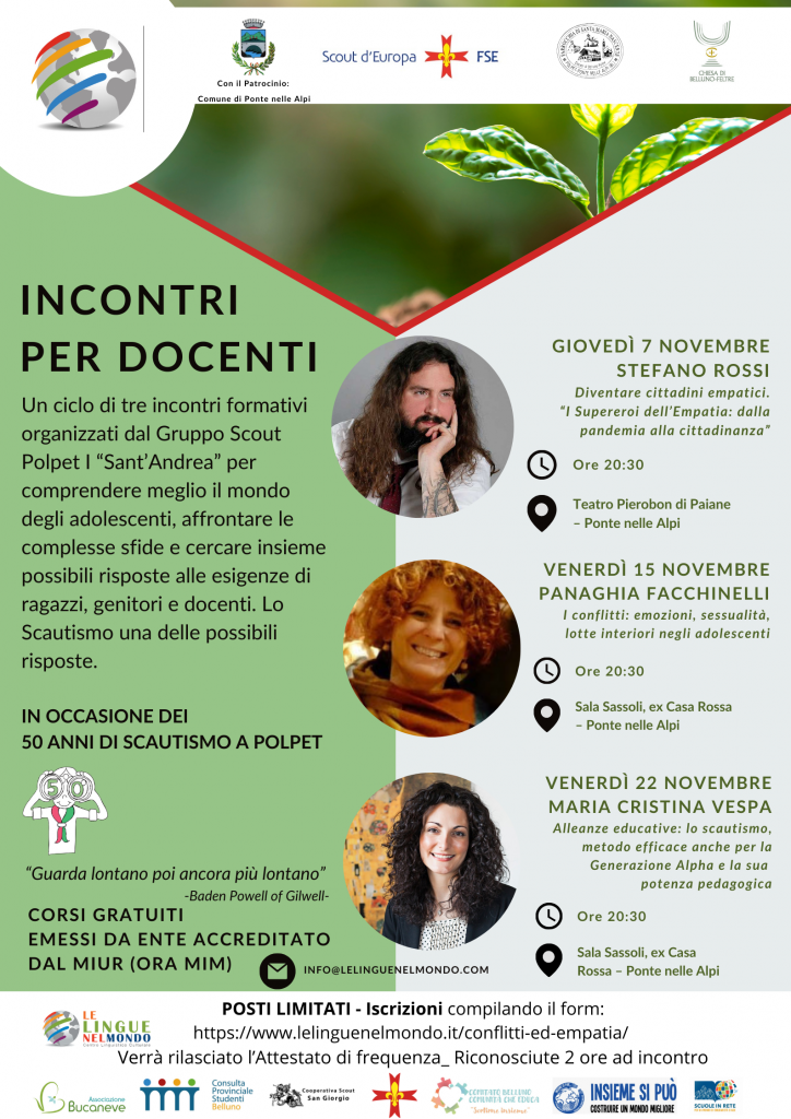 3 Incontri per Docenti: Conflitti, Emozioni, Empatia e la risposta dello scautismo_3 ore riconosciute