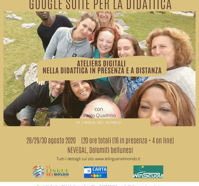 “Google Suite per la didattica” prevede un Corso sull’uso di ben 20 app di Google disponibili nella relativa Suite per organizzare il lavoro, comunicare ed insegnare a scuola.