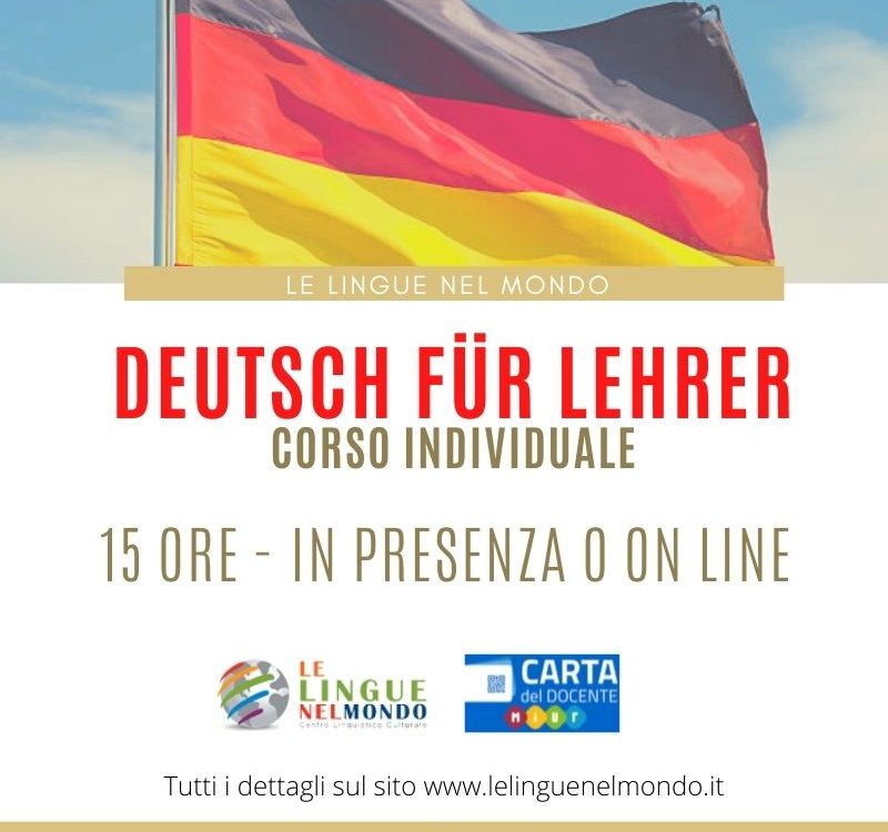 DEUTSCH FÜR PROFESSOREN individuale – 15 ore – In presenza o ON LINE livelli A2, B1, B2, C1, C2 Potrà trovare il CORSO anche sulla piattaforma […]