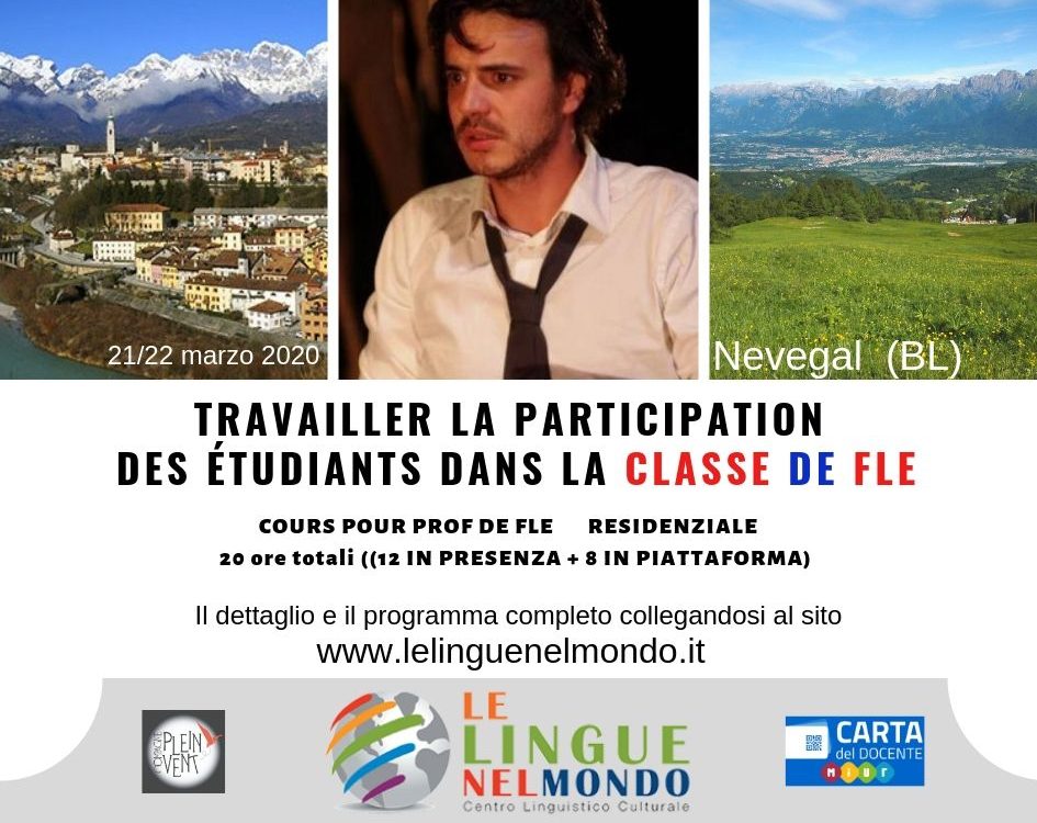 TRAVAILLER LA PARTICIPATION DES ÉLÈVES DANS LA CLASSE DE FLE (cours de théâtre/interprétation)_Nevegal (BL)_20 ore (12 in presenza + 8 in piattaforma)